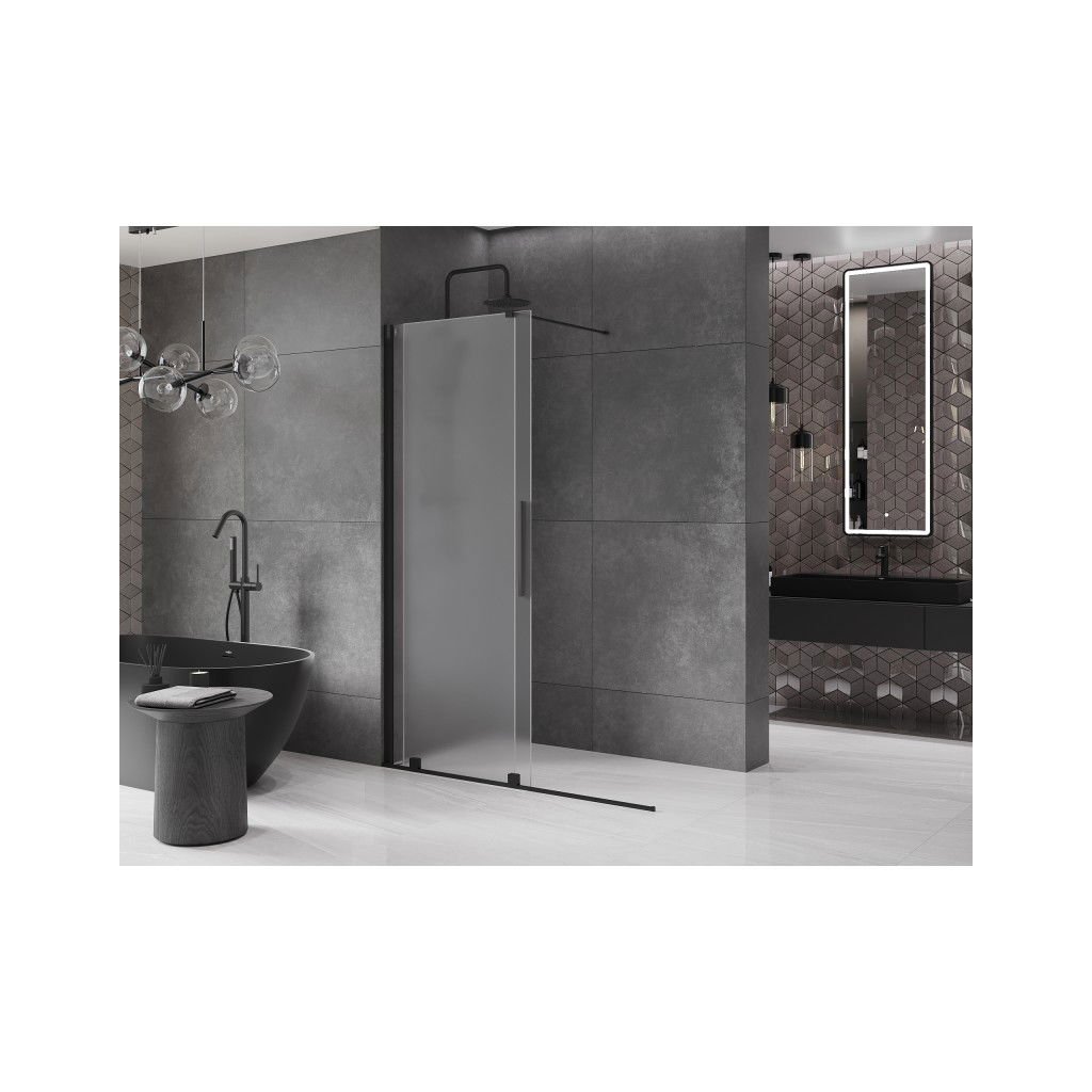 Mexen Velar, sprchová zástěna s posuvnými dveřmi Walk-in 130 x 200 cm, 8mm sklo námraza, černá matná, 871-130-000-33-70