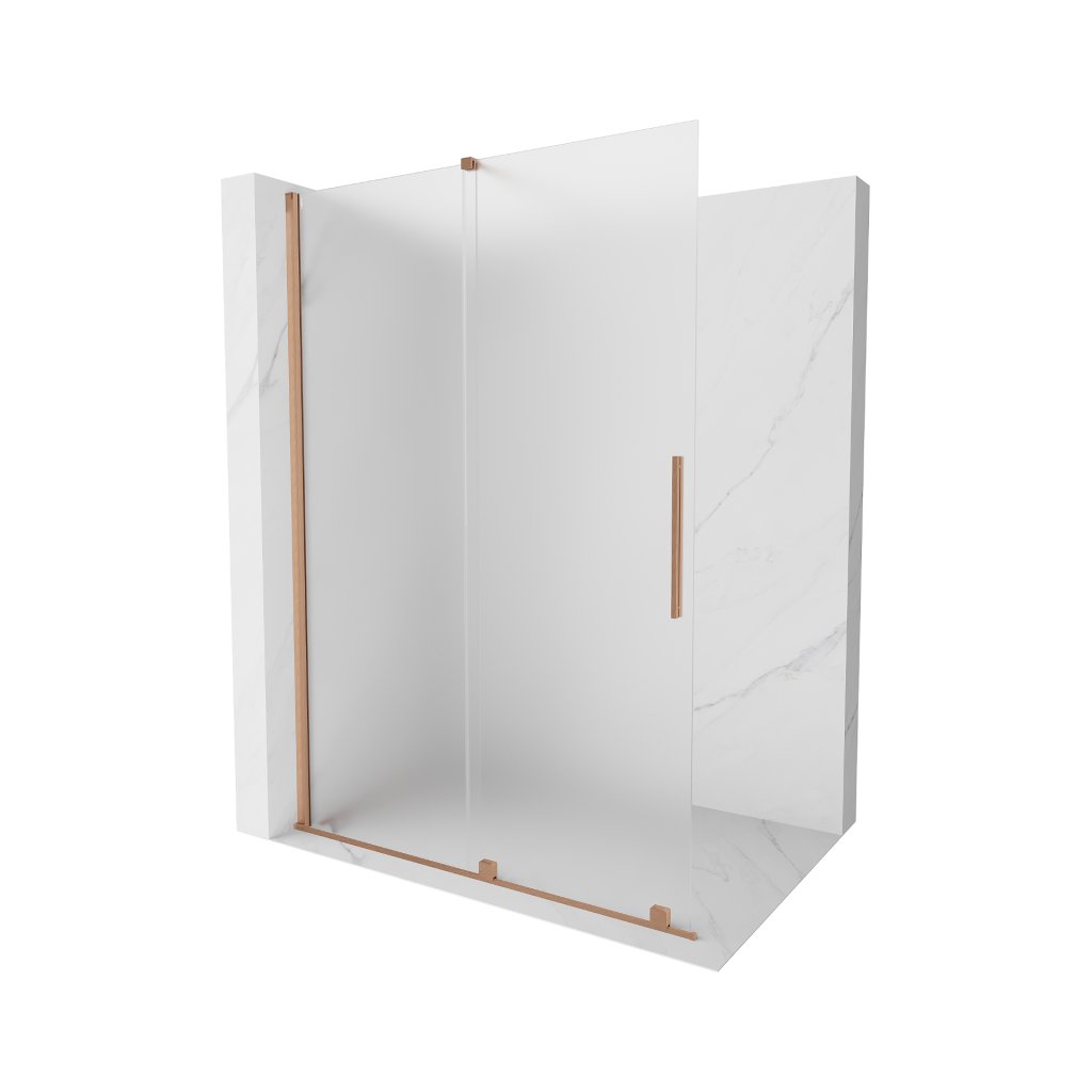 Mexen Velar, sprchová zástěna s posuvnými dveřmi Walk-in 130 x 200 cm, 8mm sklo námraza, měděná matná, 871-130-000-33-65
