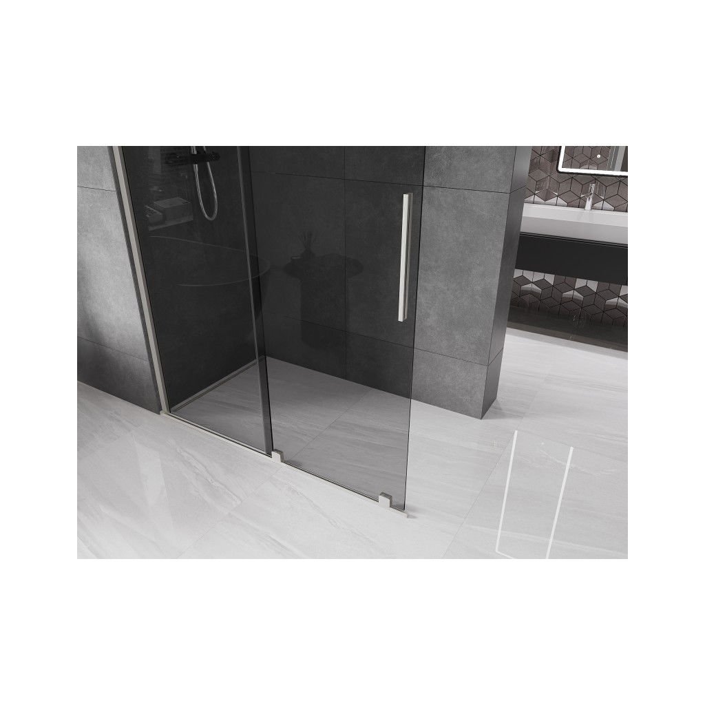 Mexen Velar, sprchová zástěna s posuvnými dveřmi Walk-in 140 x 200 cm, 8mm šedé sklo, broušená ocel, 871-140-000-43-97