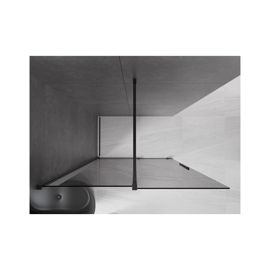 Mexen Velar, sprchová zástěna s posuvnými dveřmi Walk-in 140 x 200 cm, 8mm šedé sklo, černá matná, 871-140-000-43-70