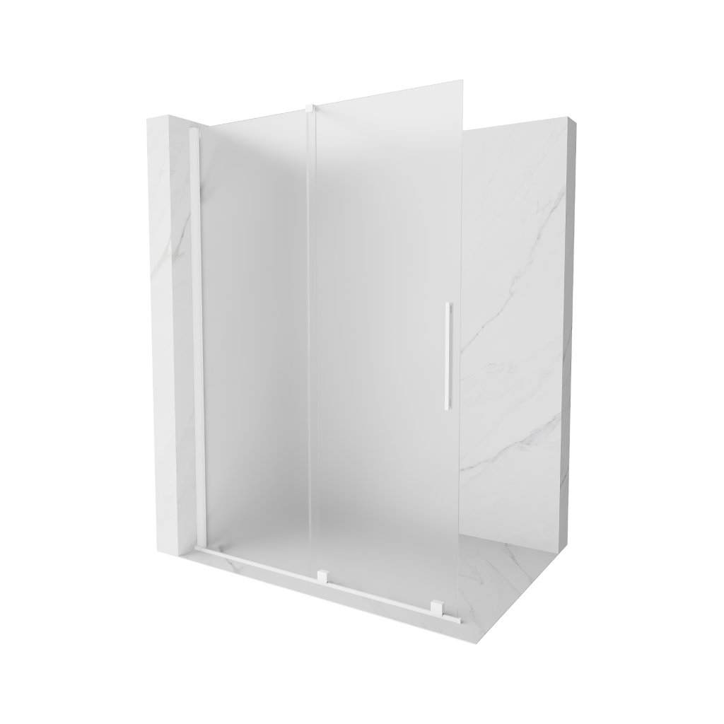 Mexen Velar, sprchová zástěna s posuvnými dveřmi Walk-in 140 x 200 cm, 8mm sklo námraza, bílá matná, 871-140-000-33-20
