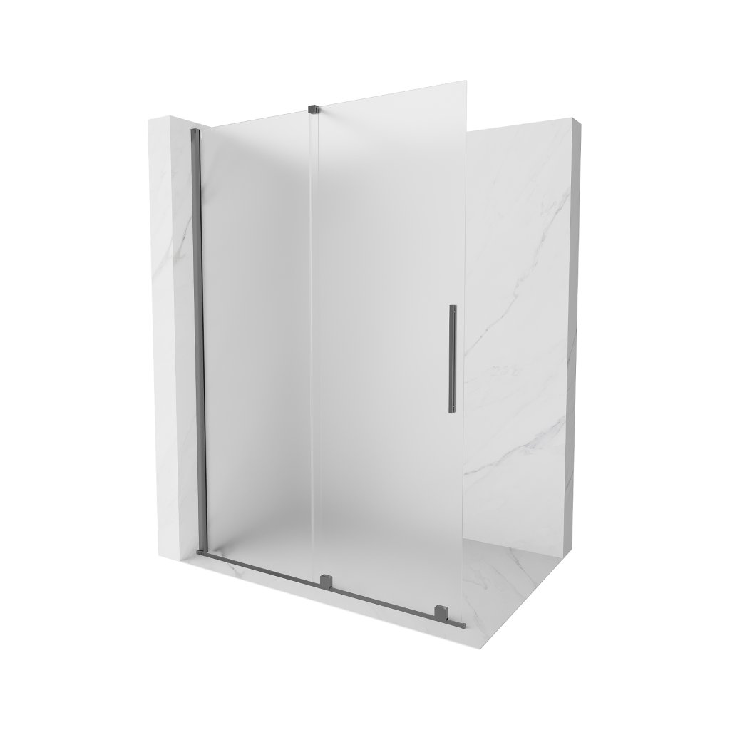 Mexen Velar, sprchová zástěna s posuvnými dveřmi Walk-in 140 x 200 cm, 8mm sklo námraza, broušený grafit, 871-140-000-33-95