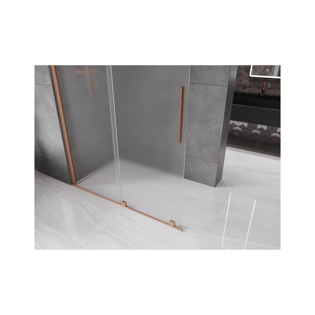 Mexen Velar, sprchová zástěna s posuvnými dveřmi Walk-in 140 x 200 cm, 8mm sklo námraza, měděná matná, 871-140-000-33-65