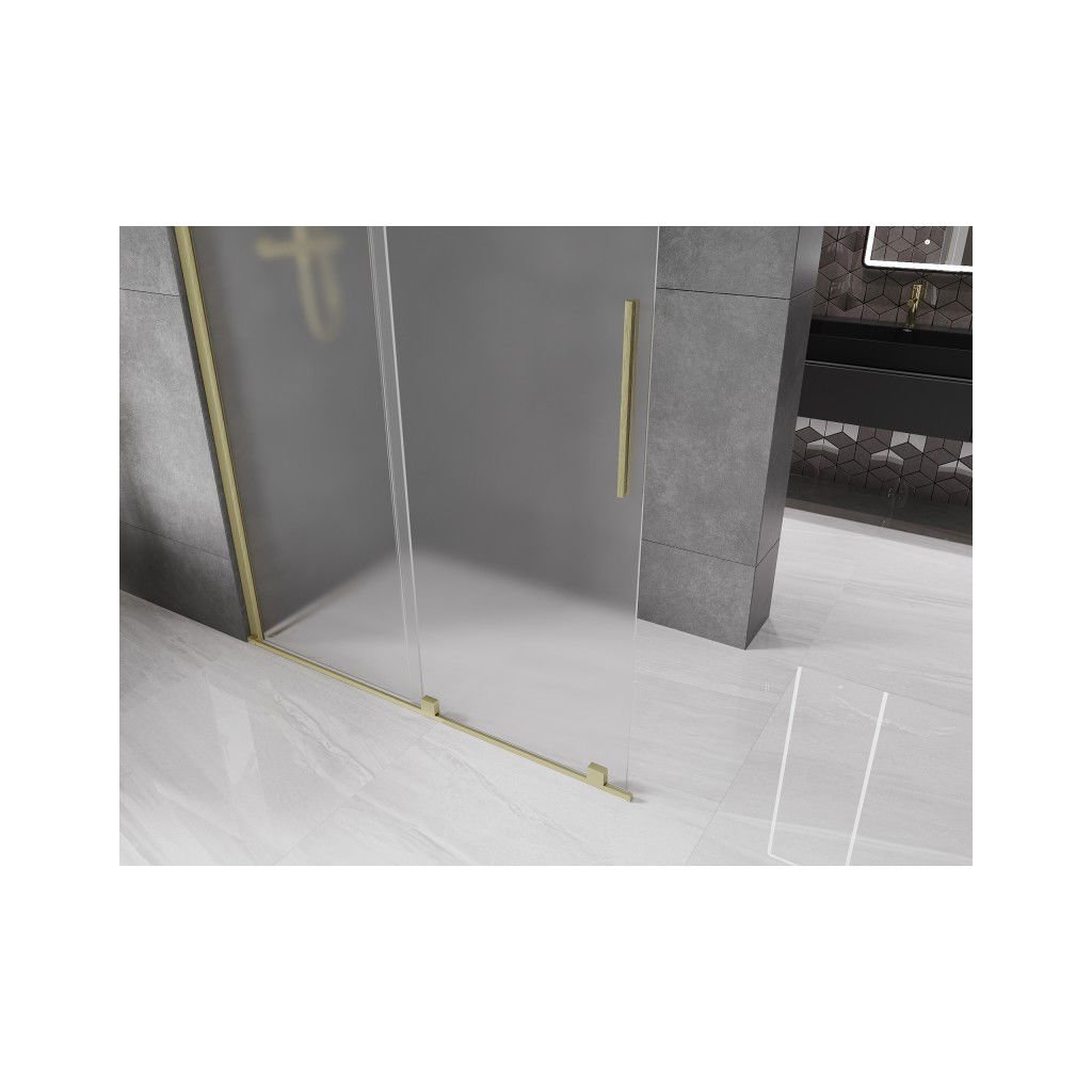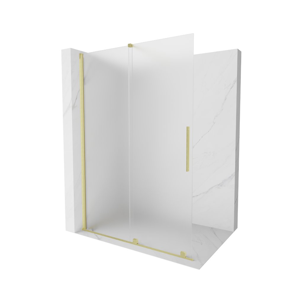 Mexen Velar, sprchová zástěna s posuvnými dveřmi Walk-in 140 x 200 cm, 8mm sklo námraza, zlatá matná, 871-140-000-33-55