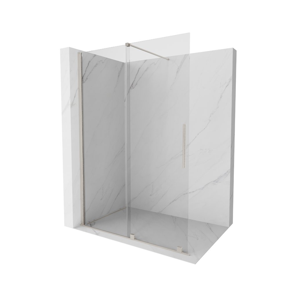 Mexen Velar, sprchová zástěna s posuvnými dveřmi Walk-in 150 x 200 cm, 8mm čiré sklo, broušená ocel, 871-150-000-03-97