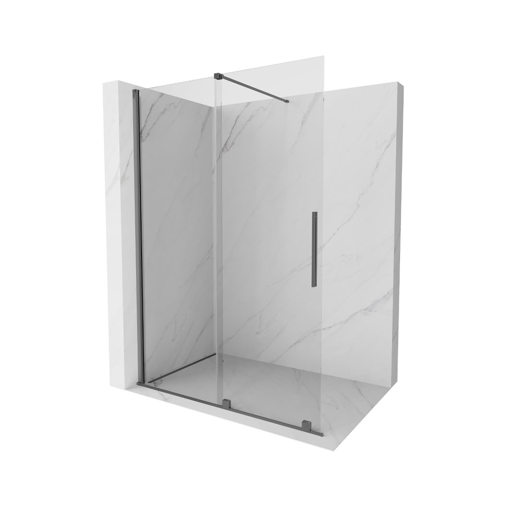 Mexen Velar, sprchová zástěna s posuvnými dveřmi Walk-in 150 x 200 cm, 8mm čiré sklo, broušený grafit, 871-150-000-03-95