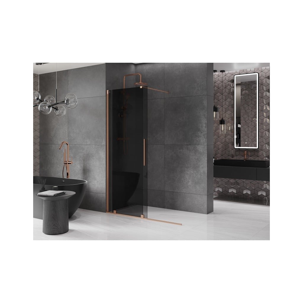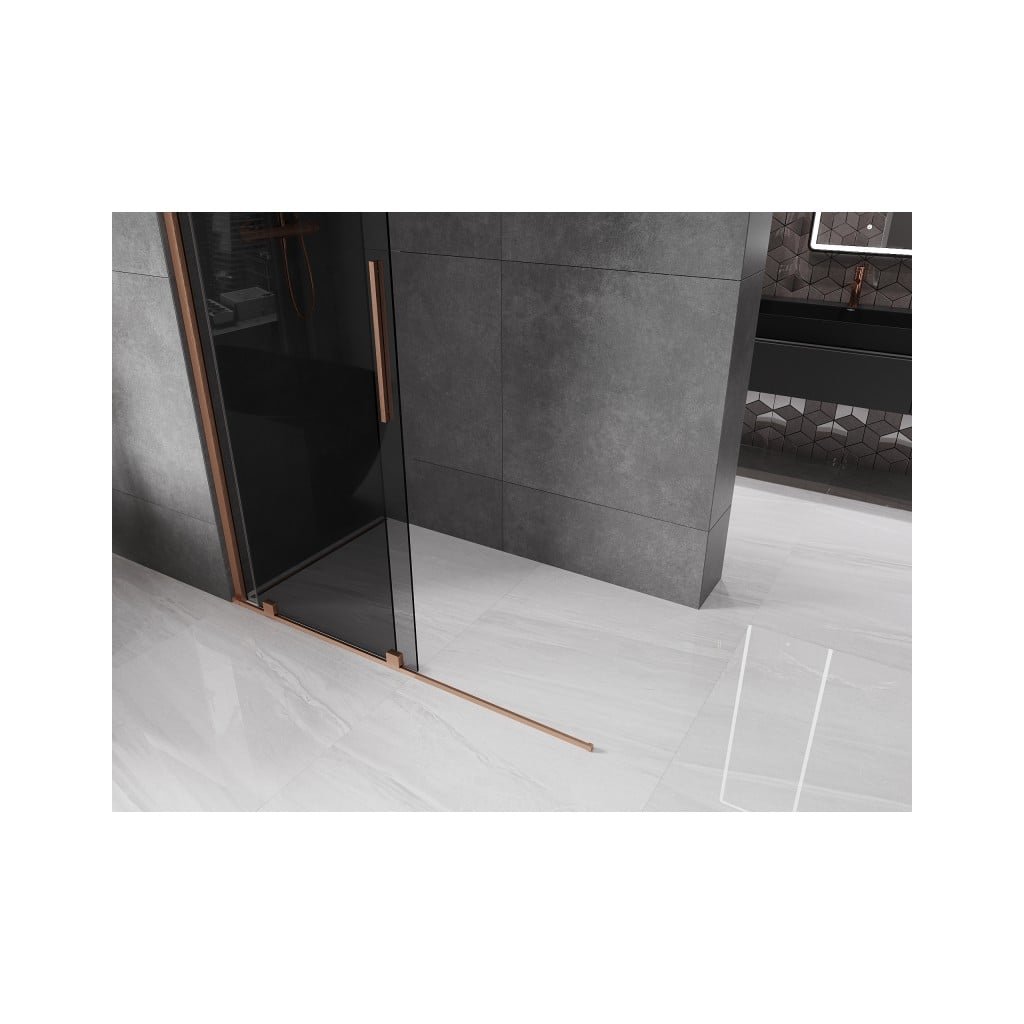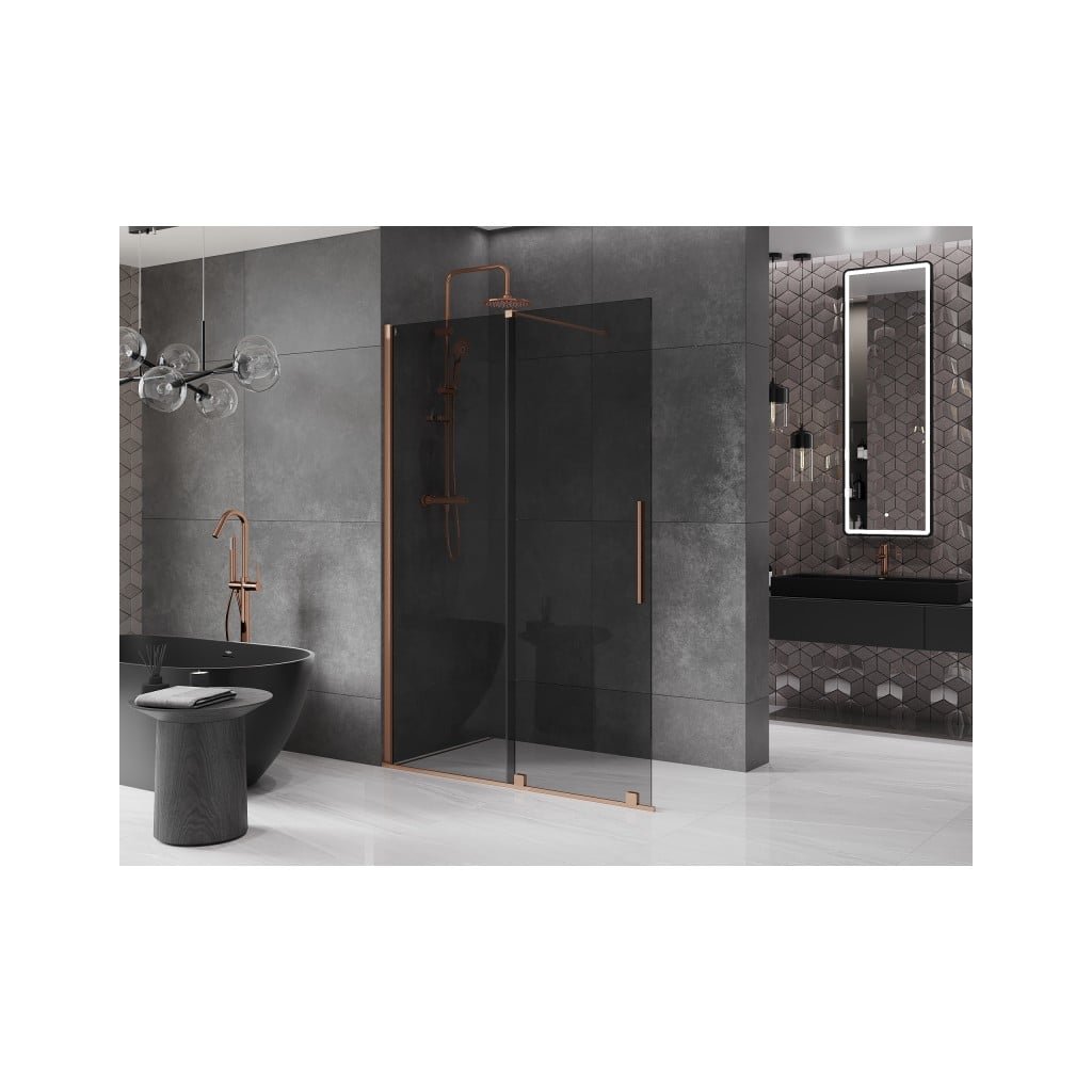 Mexen Velar, sprchová zástěna s posuvnými dveřmi Walk-in 150 x 200 cm, 8mm šedé sklo, měděná matná, 871-150-000-43-65
