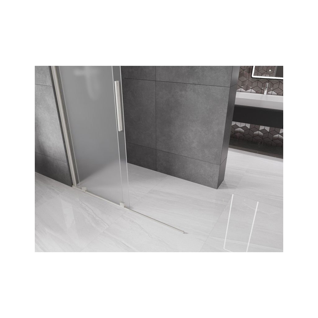 Mexen Velar, sprchová zástěna s posuvnými dveřmi Walk-in 150 x 200 cm, 8mm sklo námraza, broušená ocel, 871-150-000-33-97