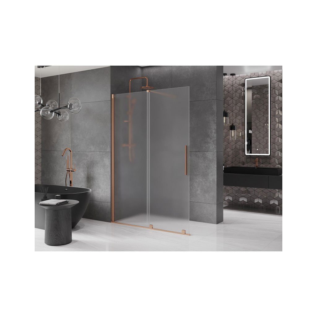 Mexen Velar, sprchová zástěna s posuvnými dveřmi Walk-in 150 x 200 cm, 8mm sklo námraza, měděná matná, 871-150-000-33-65
