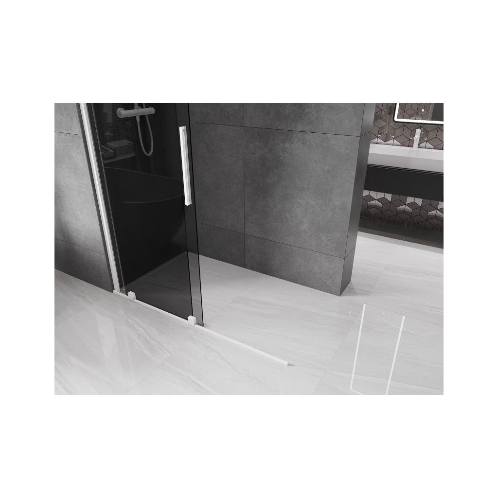 Mexen Velar, sprchová zástěna s posuvnými dveřmi Walk-in 160 x 200 cm, 8mm šedé sklo, bílá matná, 871-160-000-43-20