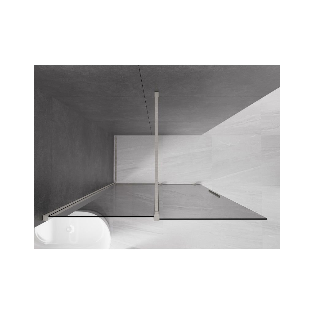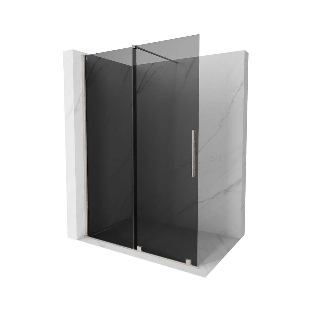 Mexen Velar, sprchová zástěna s posuvnými dveřmi Walk-in 160 x 200 cm, 8mm šedé sklo, broušená ocel, 871-160-000-43-97
