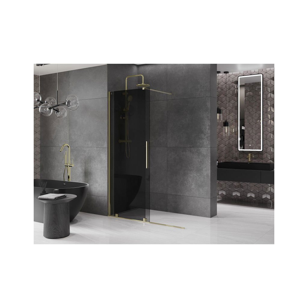 Mexen Velar, sprchová zástěna s posuvnými dveřmi Walk-in 160 x 200 cm, 8mm šedé sklo, zlatá lesklá, 871-160-000-43-50