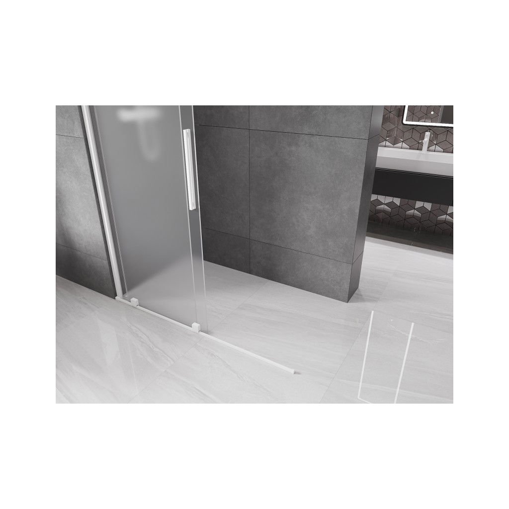 Mexen Velar, sprchová zástěna s posuvnými dveřmi Walk-in 160 x 200 cm, 8mm sklo námraza, bílá matná, 871-160-000-33-20