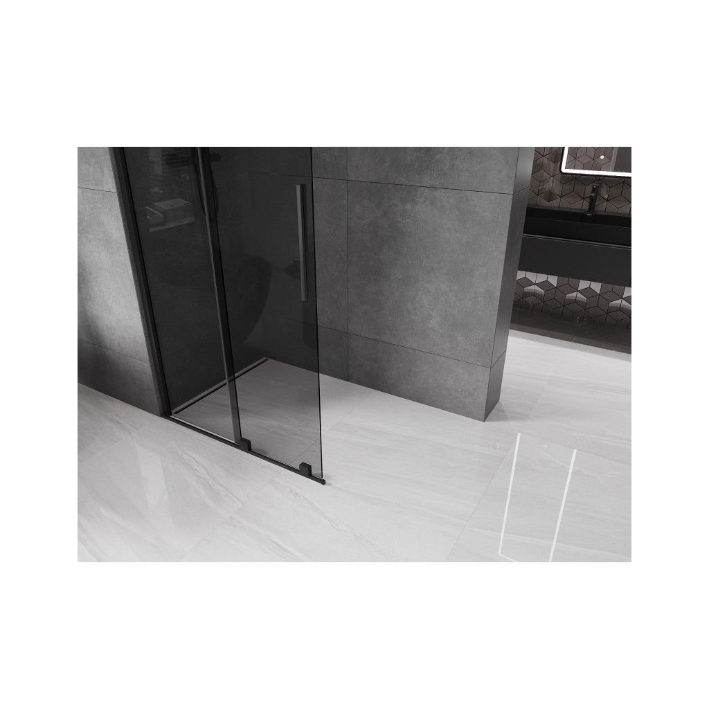 Mexen Velar, sprchová zástěna s posuvnými dveřmi Walk-in 70 x 200 cm, 8mm šedé sklo, černá matná, 871-070-000-43-70