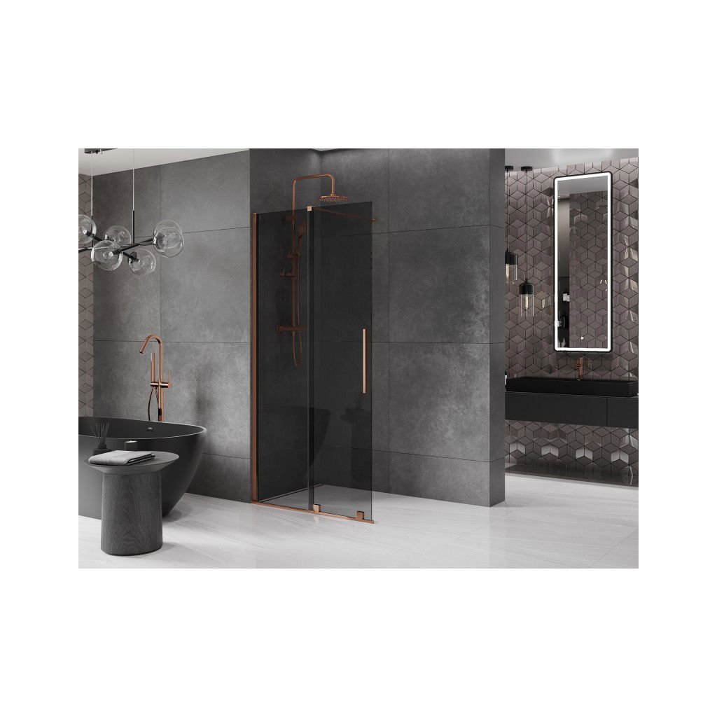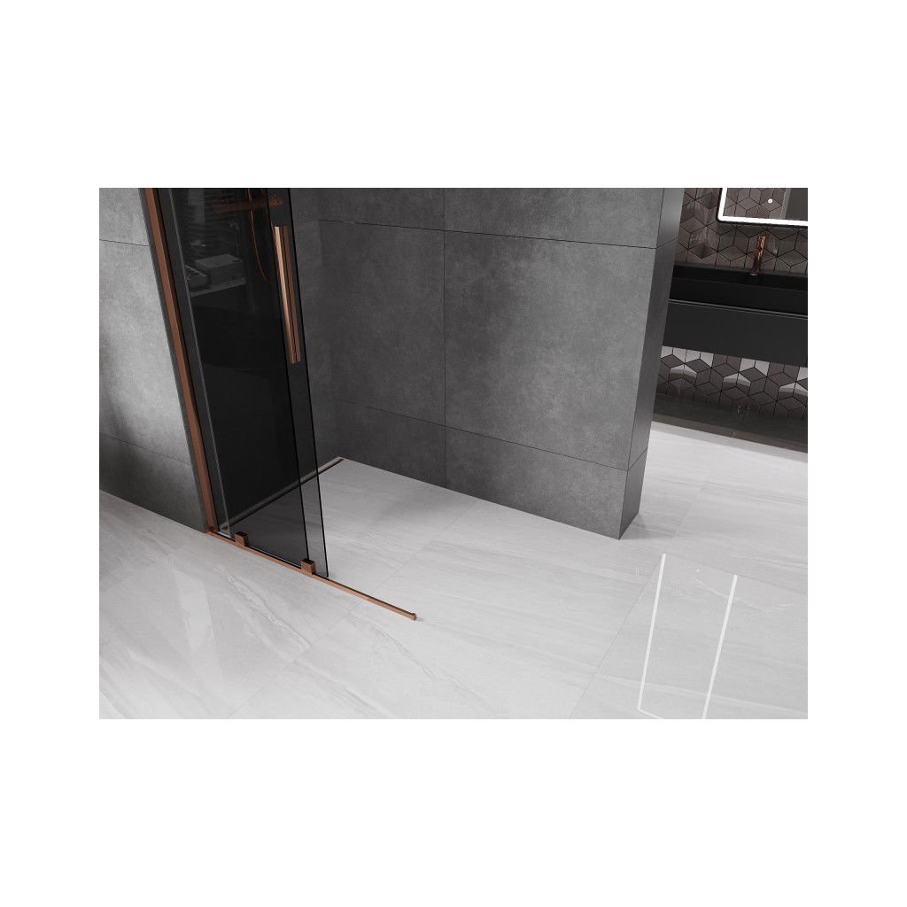 Mexen Velar, sprchová zástěna s posuvnými dveřmi Walk-in 70 x 200 cm, 8mm šedé sklo, růžové zlato, 871-070-000-43-60