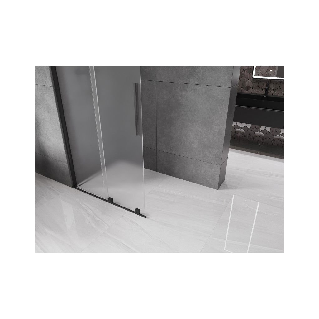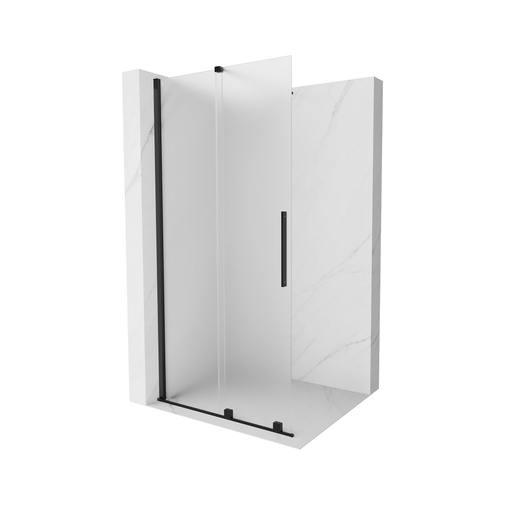 Mexen Velar, sprchová zástěna s posuvnými dveřmi Walk-in 70 x 200 cm, 8mm sklo námraza, černá matná, 871-070-000-33-70