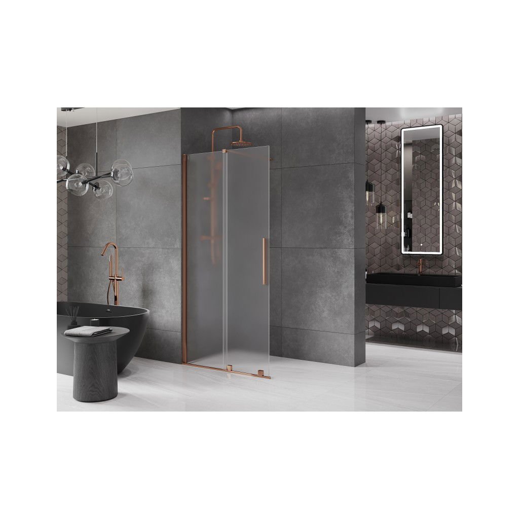 Mexen Velar, sprchová zástěna s posuvnými dveřmi Walk-in 70 x 200 cm, 8mm sklo námraza, růžové zlato, 871-070-000-33-60