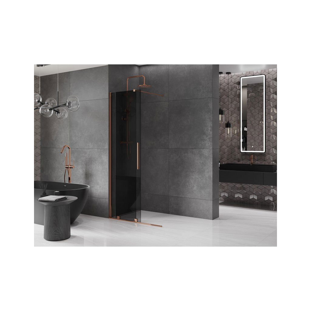 Mexen Velar, sprchová zástěna s posuvnými dveřmi Walk-in 75 x 200 cm, 8mm šedé sklo, růžové zlato, 871-075-000-43-60