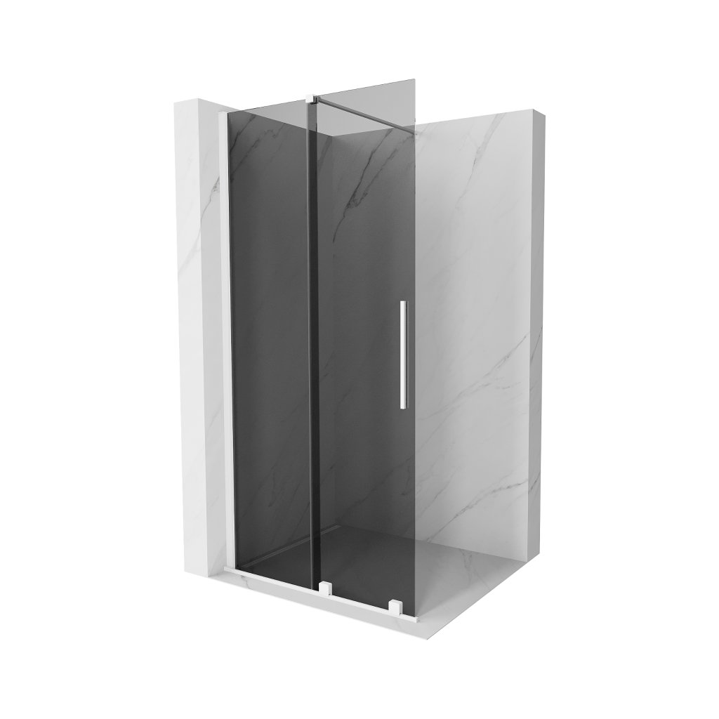 Mexen Velar, sprchová zástěna s posuvnými dveřmi Walk-in 80 x 200 cm, 8mm šedé sklo, bílá matná, 871-080-000-43-20