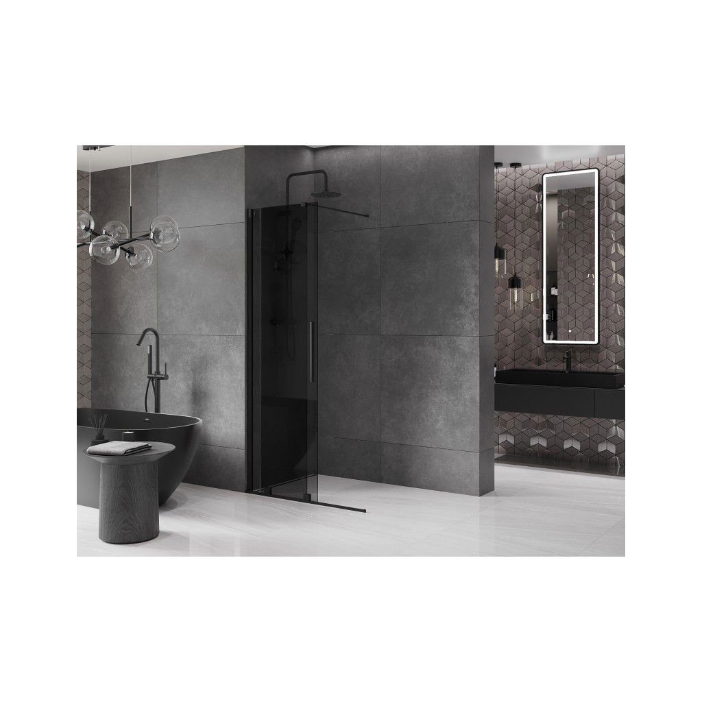 Mexen Velar, sprchová zástěna s posuvnými dveřmi Walk-in 80 x 200 cm, 8mm šedé sklo, černá matná, 871-080-000-43-70