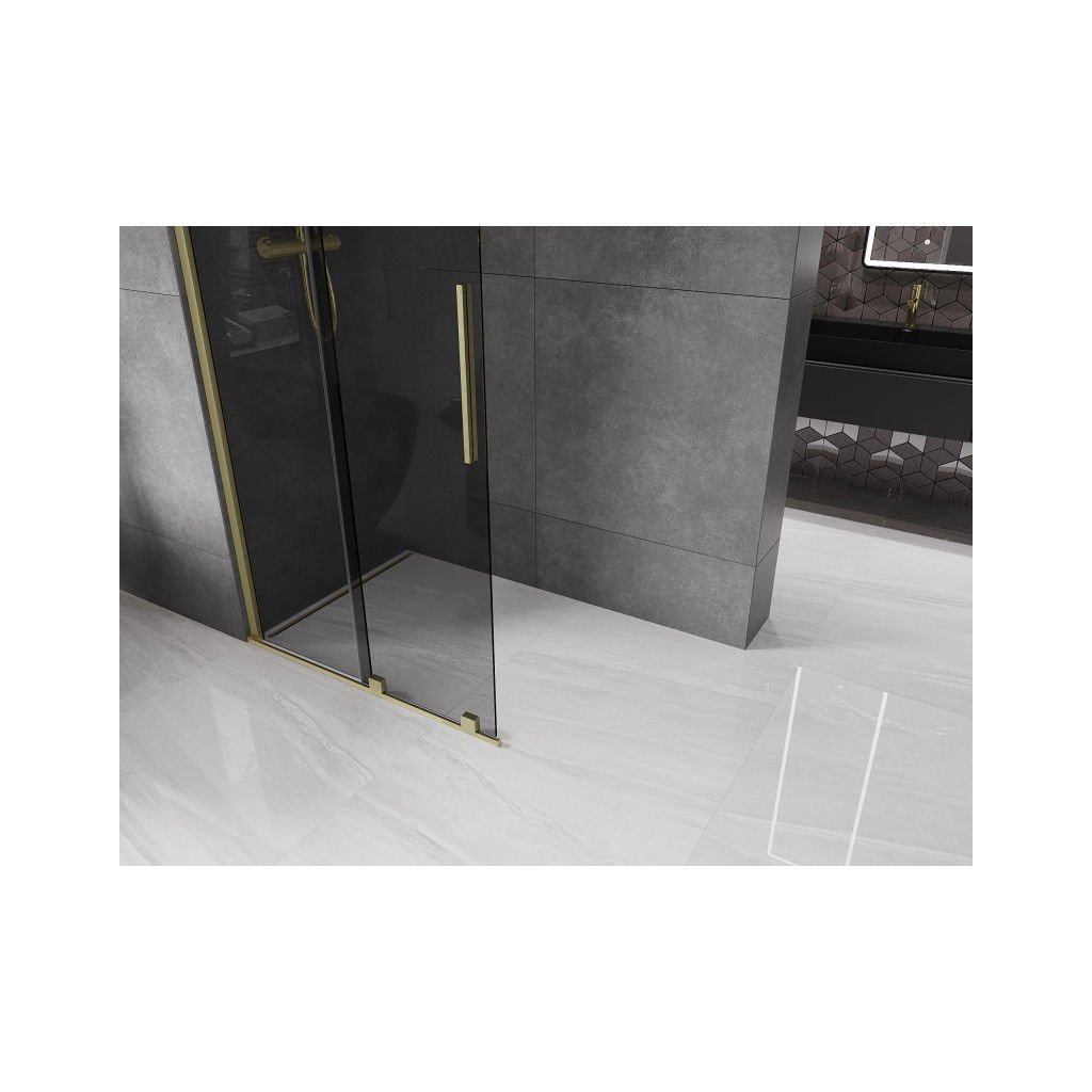 Mexen Velar, sprchová zástěna s posuvnými dveřmi Walk-in 80 x 200 cm, 8mm šedé sklo, zlatá matná, 871-080-000-43-55