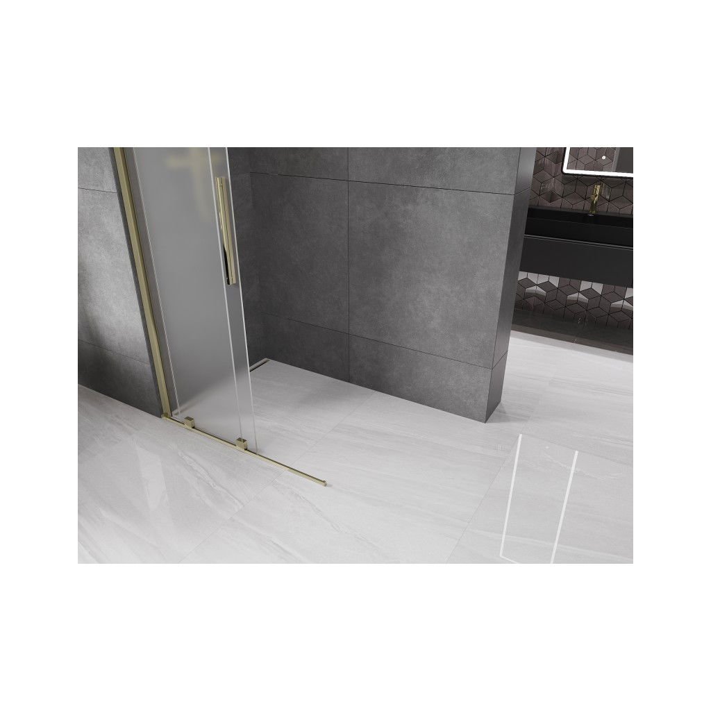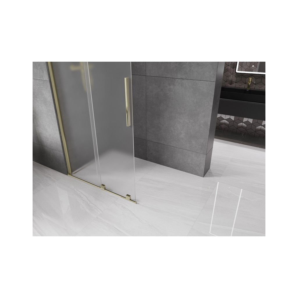 Mexen Velar, sprchová zástěna s posuvnými dveřmi Walk-in 80 x 200 cm, 8mm sklo námraza, zlatá lesklá, 871-080-000-33-50