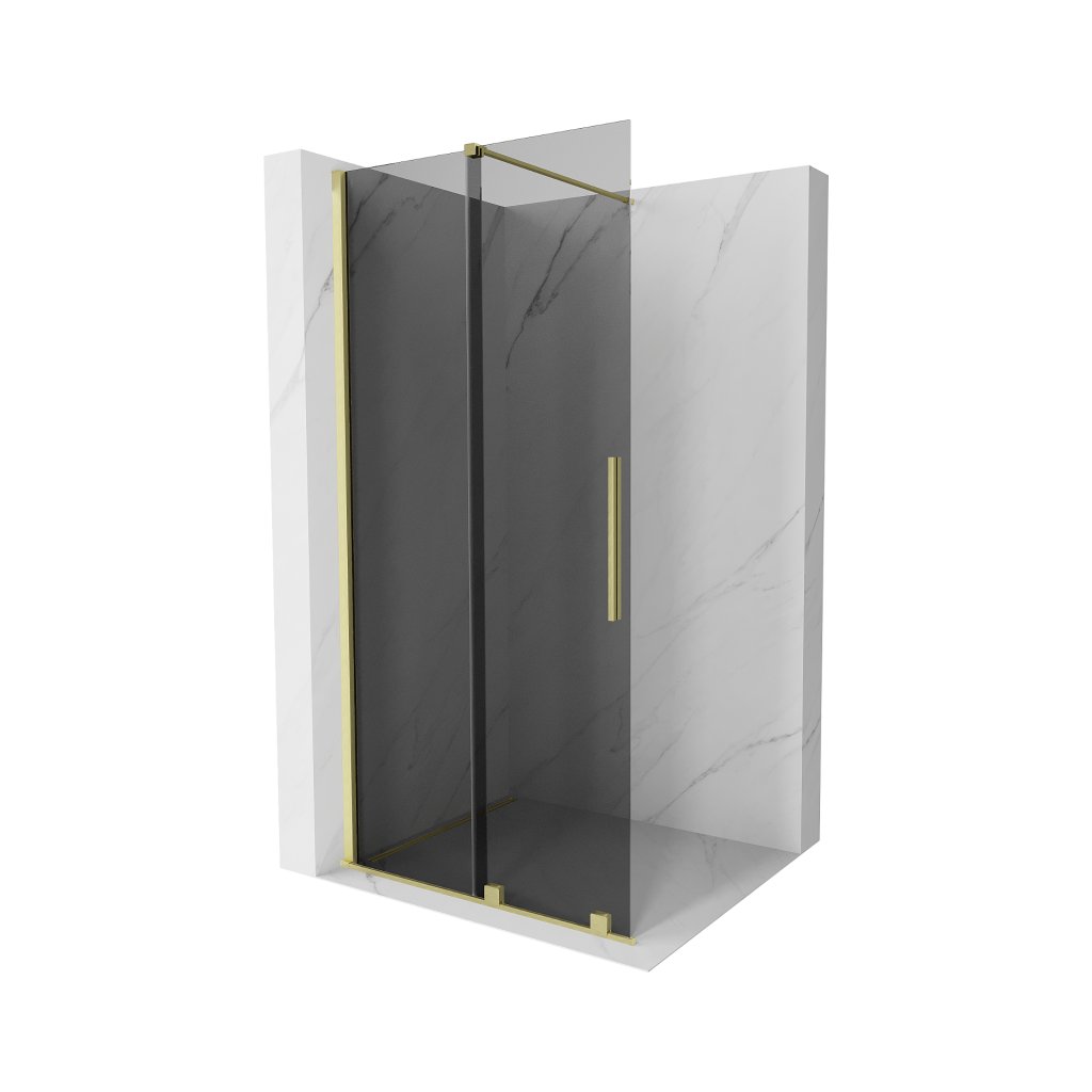 Mexen Velar, sprchová zástěna s posuvnými dveřmi Walk-in 85 x 200 cm, 8mm šedé sklo, zlatá matná, 871-085-000-43-55