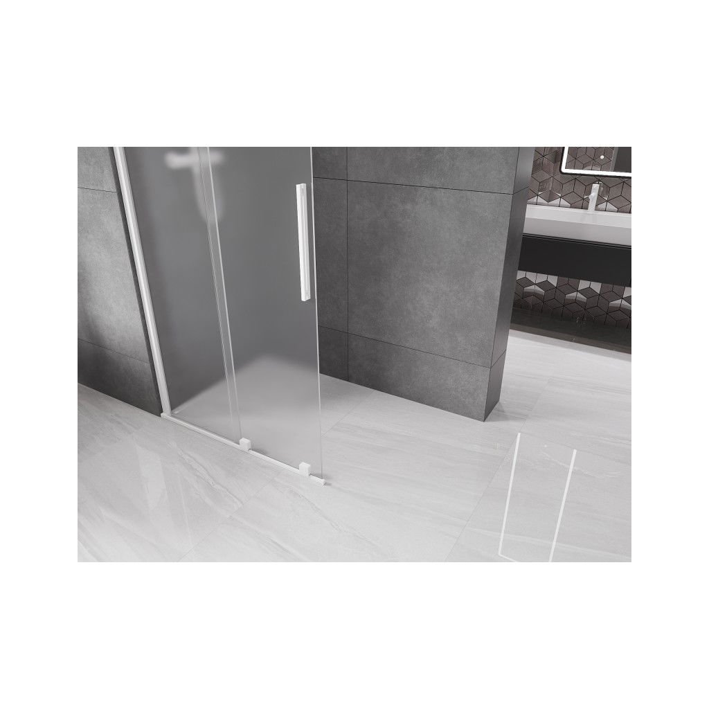Mexen Velar, sprchová zástěna s posuvnými dveřmi Walk-in 85 x 200 cm, 8mm sklo námraza, bílá matná, 871-085-000-33-20