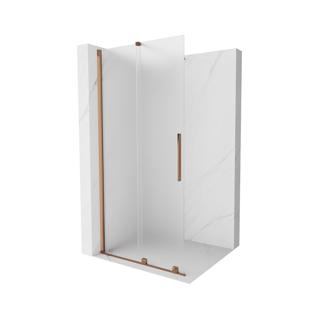 Mexen Velar, sprchová zástěna s posuvnými dveřmi Walk-in 85 x 200 cm, 8mm sklo námraza, růžové zlato, 871-085-000-33-60