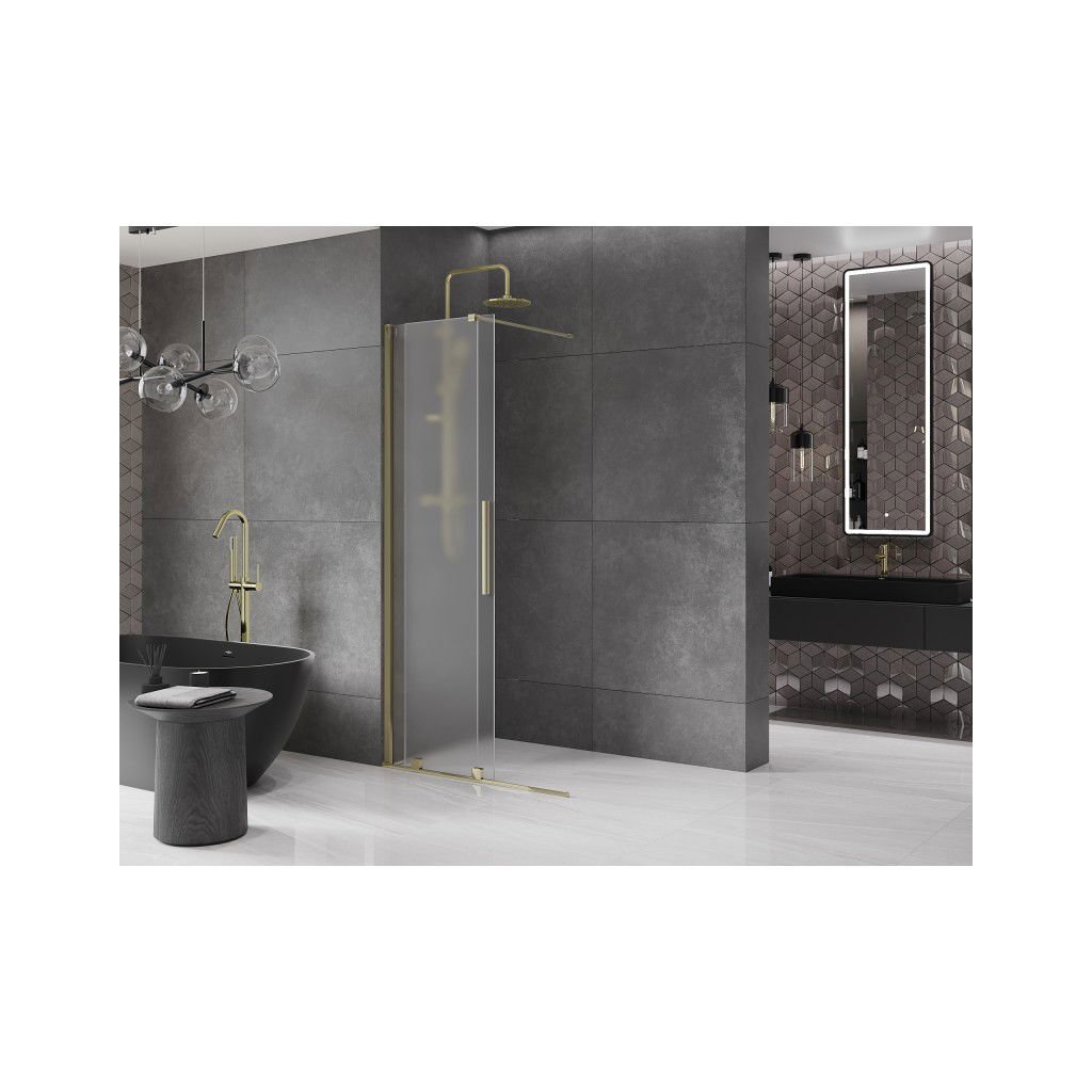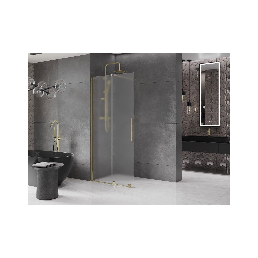 Mexen Velar, sprchová zástěna s posuvnými dveřmi Walk-in 85 x 200 cm, 8mm sklo námraza, zlatá lesklá, 871-085-000-33-50
