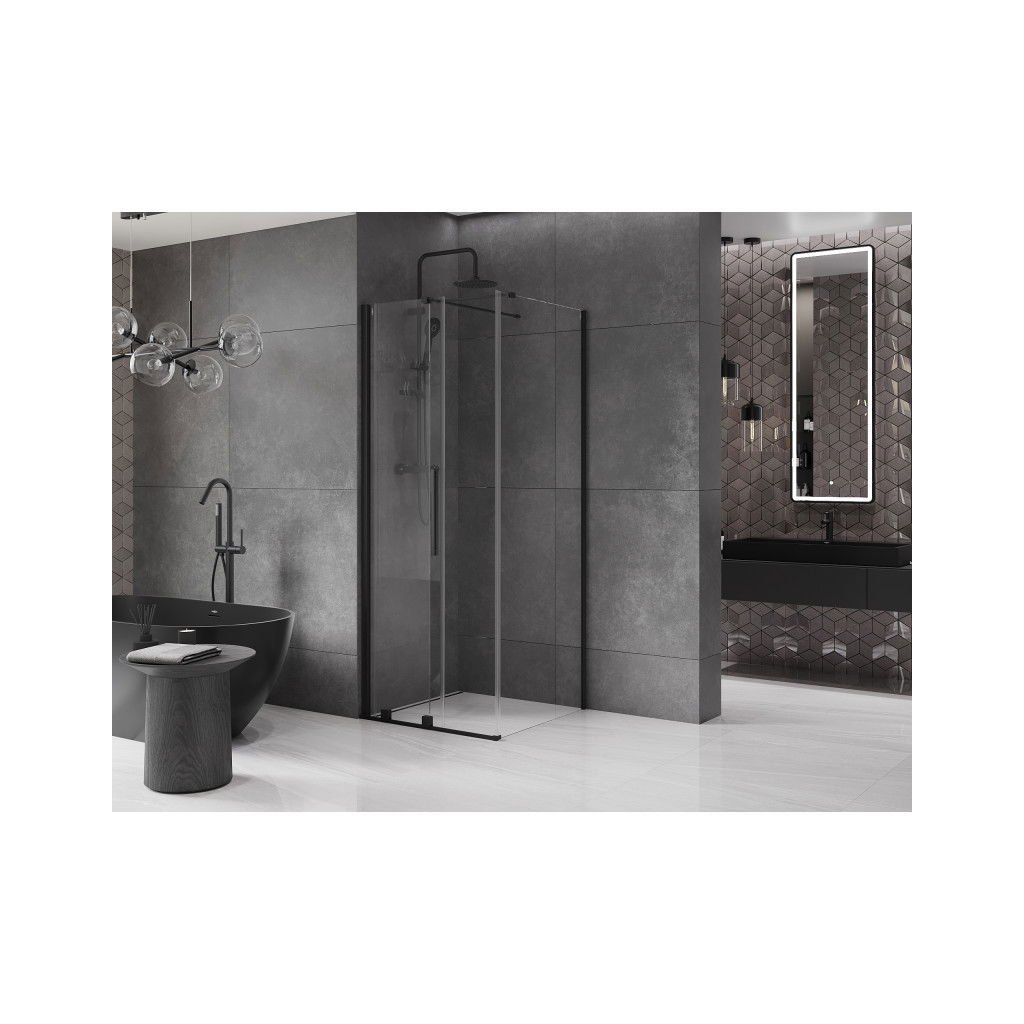 Mexen Velar, sprchový kout s posuvnými dveřmi 100(dveře) x 100(stěna) cm, 8mm čiré sklo, černá matná, 871-100-100-01-70