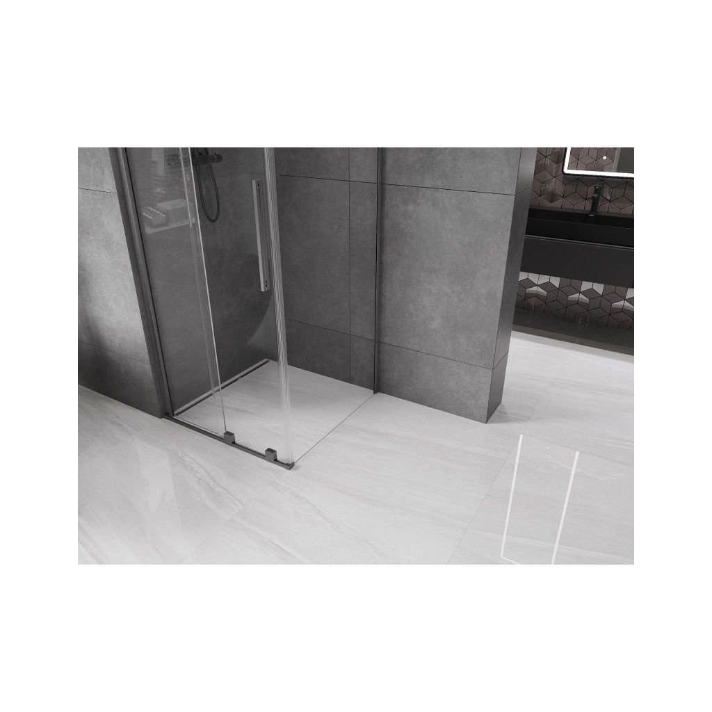 Mexen Velar, sprchový kout s posuvnými dveřmi 100(dveře) x 100(stěna) cm, 8mm čiré sklo, grafitová matná, 871-100-100-01-66