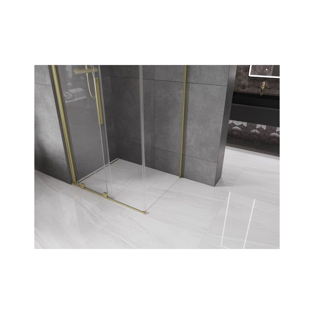 Mexen Velar, sprchový kout s posuvnými dveřmi 100(dveře) x 85(stěna) cm, 8mm čiré sklo, zlatá matná, 871-100-085-01-55