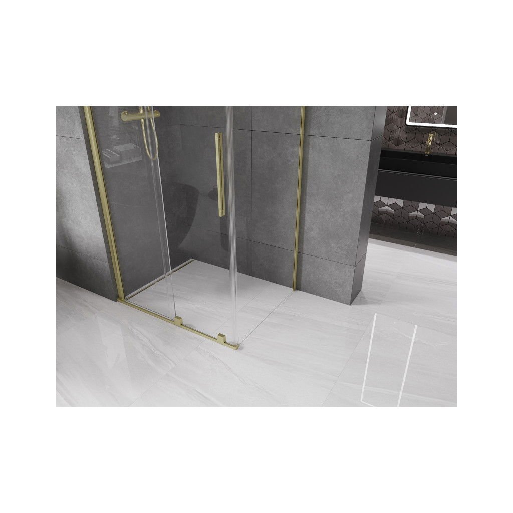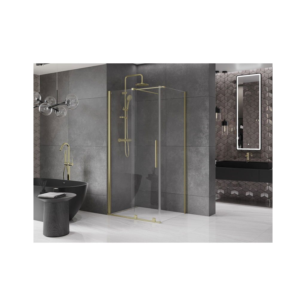 Mexen Velar, sprchový kout s posuvnými dveřmi 110(dveře) x 80(stěna) cm, 8mm čiré sklo, zlatá matná, 871-110-080-01-55