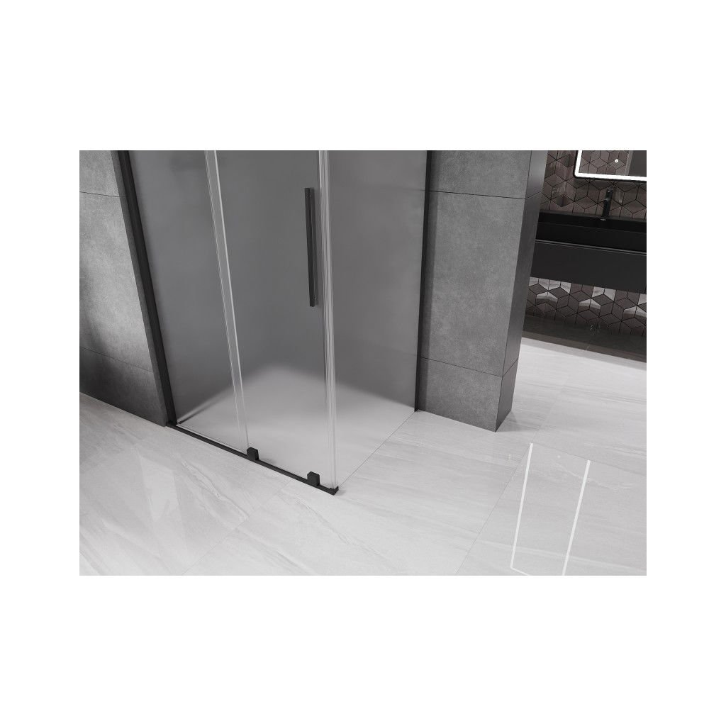 Mexen Velar, sprchový kout s posuvnými dveřmi 130 x 85 cm, 8mm sklo námraza, černá matná, 871-130-085-31-70