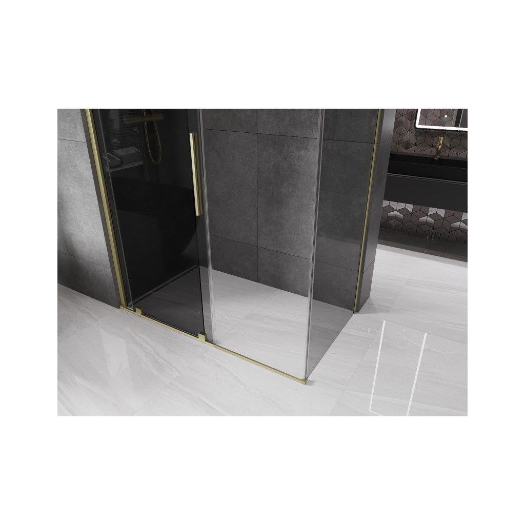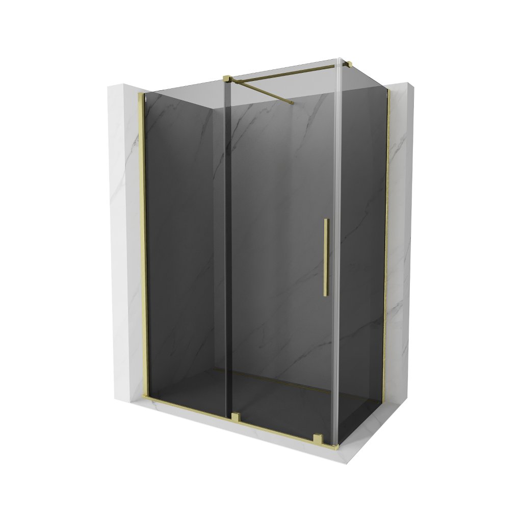 Mexen Velar, sprchový kout s posuvnými dveřmi 140 x 70 cm, 8mm šedé sklo, zlatá matná, 871-140-070-41-55