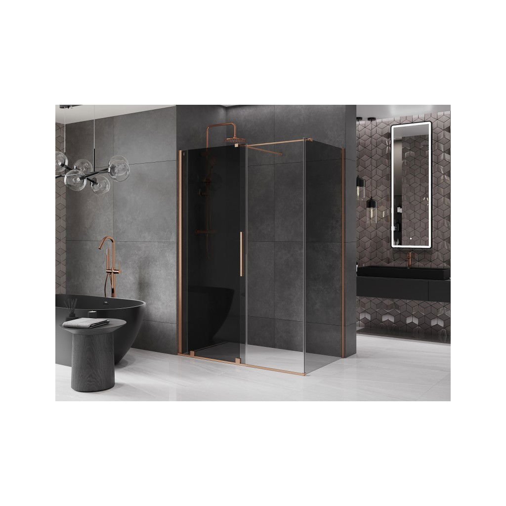 Mexen Velar, sprchový kout s posuvnými dveřmi 140 x 80 cm, 8mm šedé sklo, měděná matná, 871-140-080-41-65