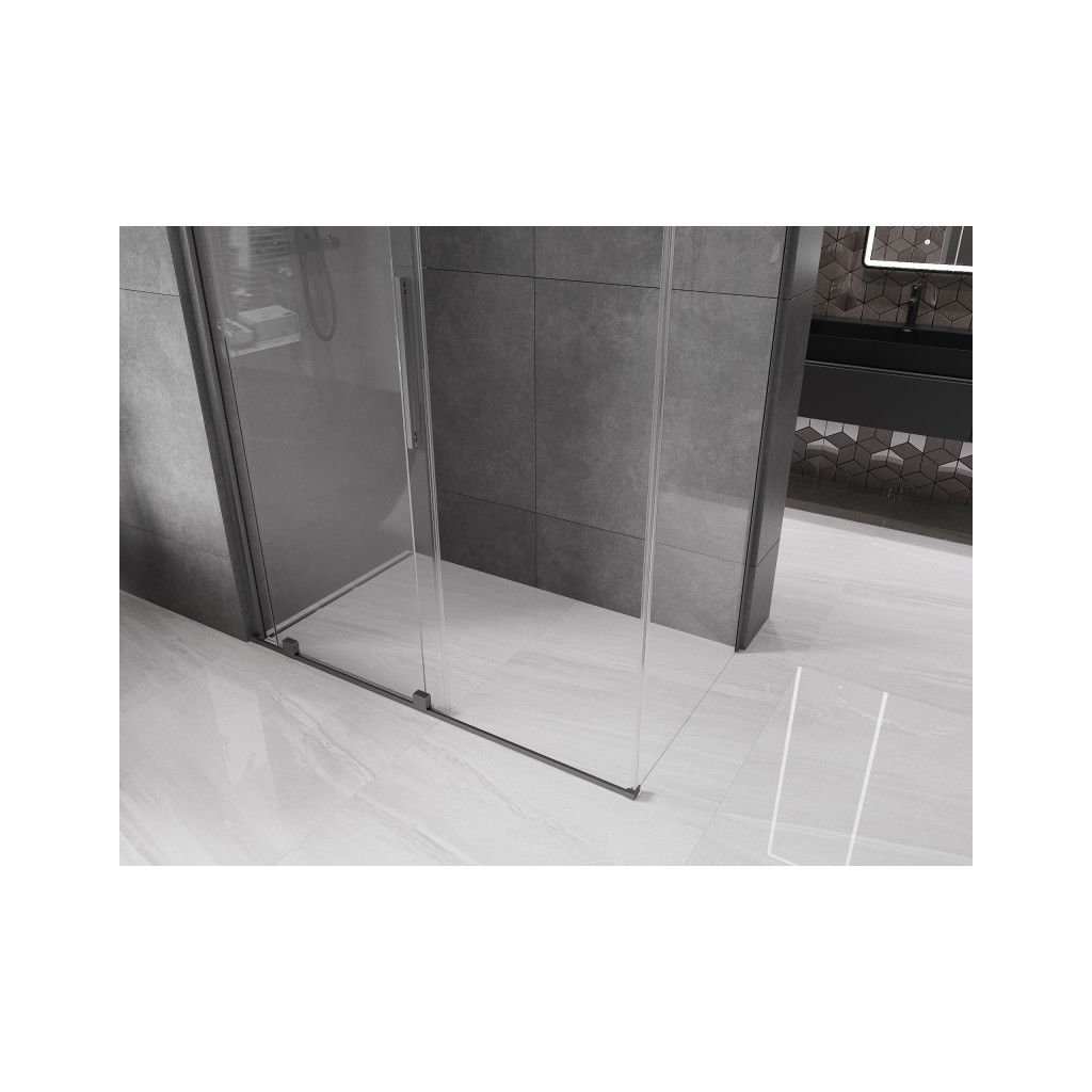Mexen Velar, sprchový kout s posuvnými dveřmi 150(dveře) x 80(stěna) cm, 8mm čiré sklo, grafitová matná, 871-150-080-01-66