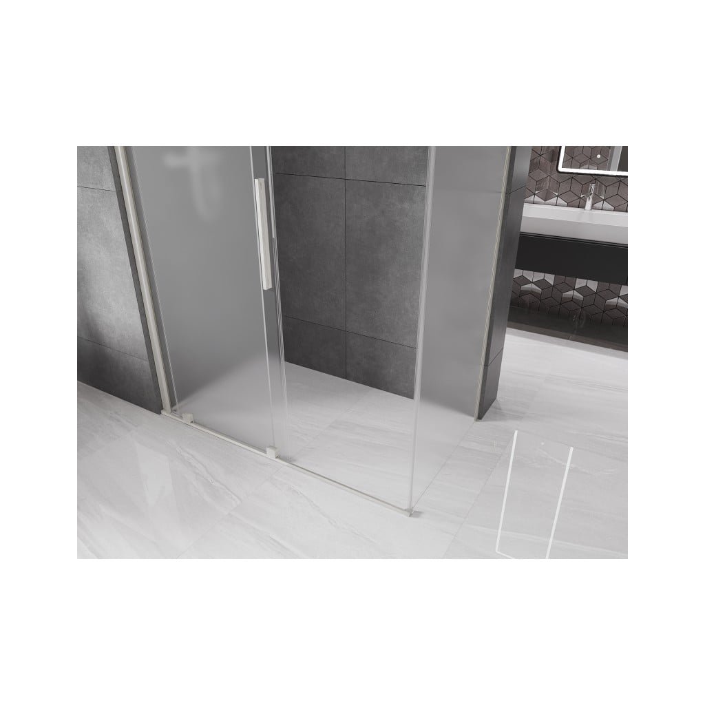 Mexen Velar, sprchový kout s posuvnými dveřmi 150 x 85 cm, 8mm sklo námraza, broušená ocel, 871-150-085-31-97