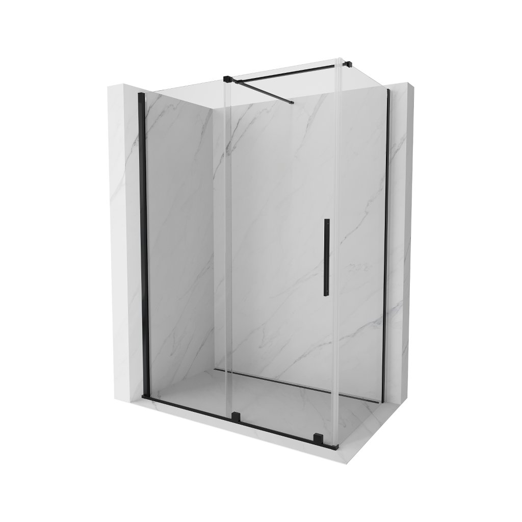 Mexen Velar, sprchový kout s posuvnými dveřmi 160(dveře) x 75(stěna) cm, 8mm čiré sklo, černá matná, 871-160-075-01-70
