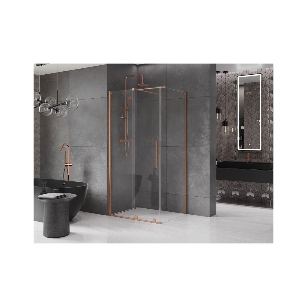 Mexen Velar, sprchový kout s posuvnými dveřmi 90(dveře) x 70(stěna) cm, 8mm čiré sklo, měděná matná, 871-090-070-01-65