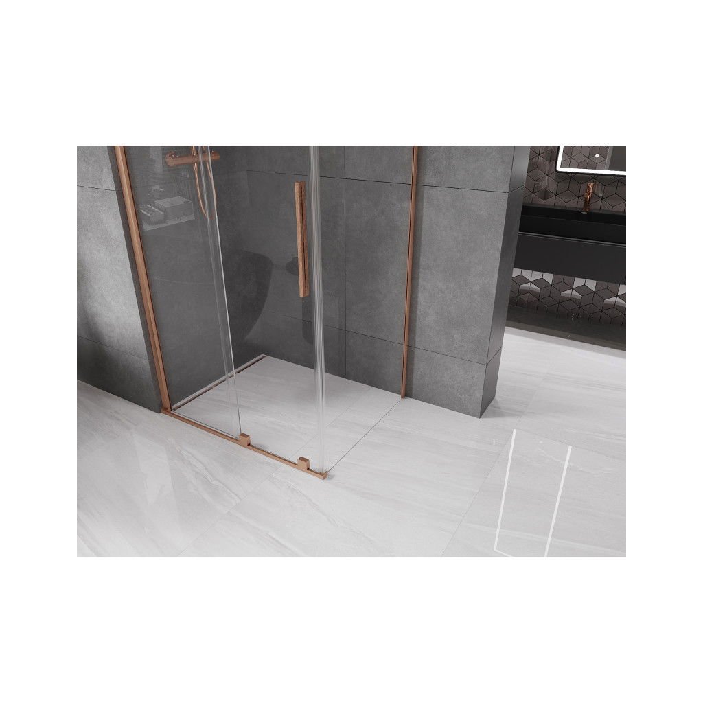 Mexen Velar, sprchový kout s posuvnými dveřmi 90(dveře) x 85(stěna) cm, 8mm čiré sklo, měděná matná, 871-090-085-01-65