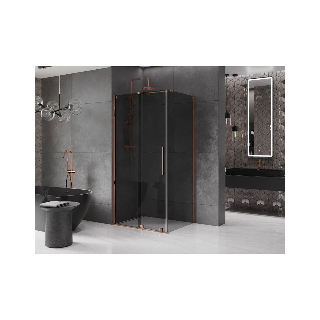 Mexen Velar, sprchový kout s posuvnými dveřmi 90 x 85 cm, 8mm šedé sklo, růžové zlato, 871-090-085-41-60