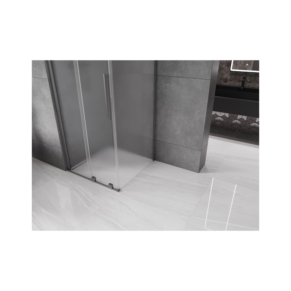 Mexen Velar, sprchový kout s posuvnými dveřmi 90 x 90 cm, 8mm sklo námraza, grafit broušený, 871-090-090-31-66