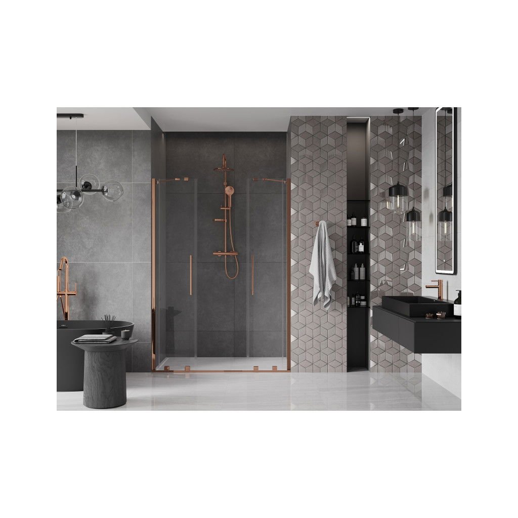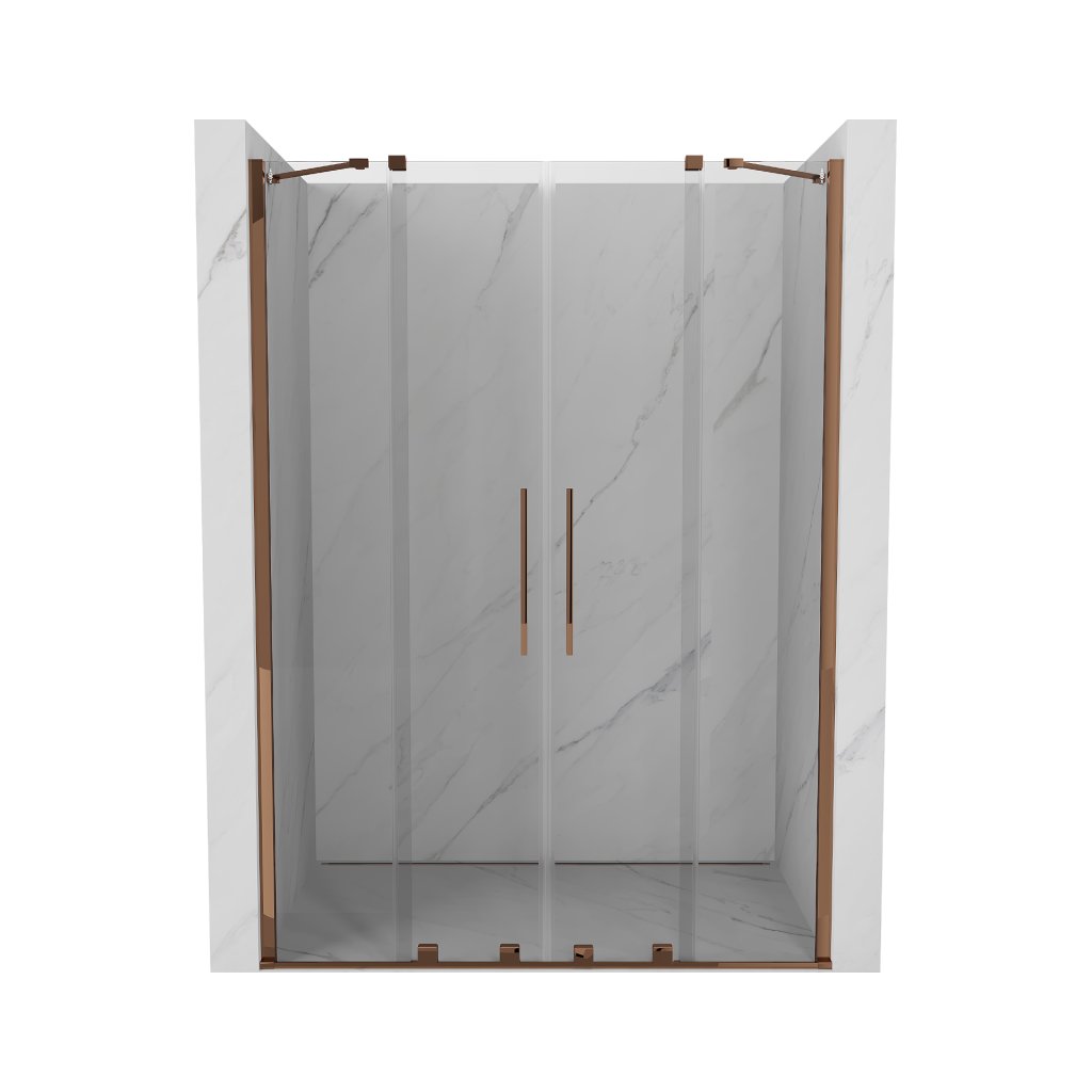 Mexen Velar Duo, posuvné dveře do otvoru 140x200 cm, 8mm čiré sklo, růžové zlato, 871-140-000-02-60