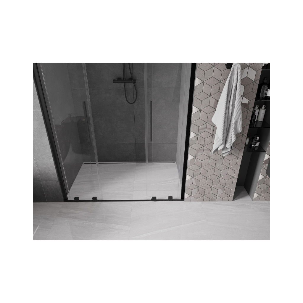 Mexen Velar Duo, posuvné dveře do otvoru 160x200 cm, 8mm čiré sklo, černá matná, 871-160-000-02-70