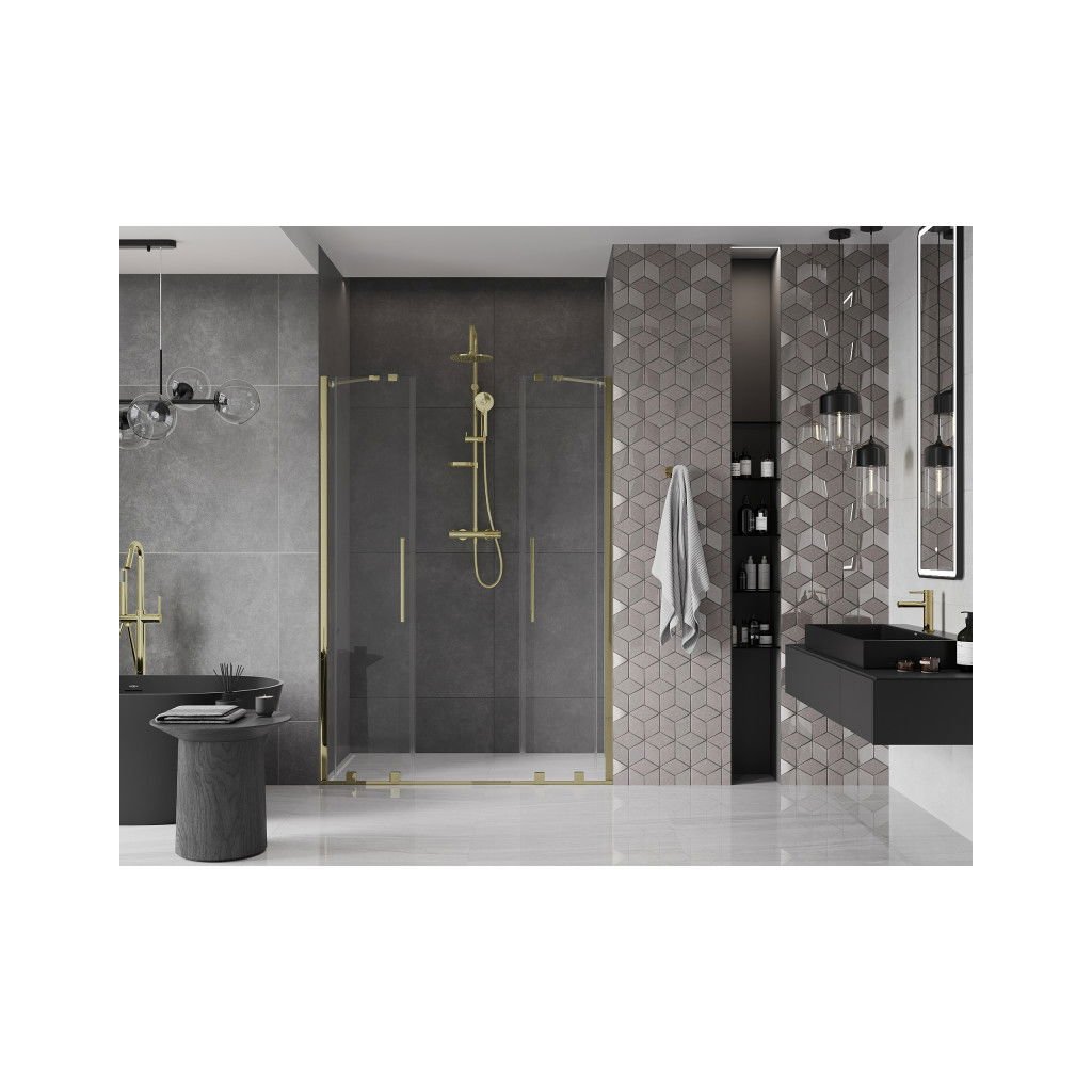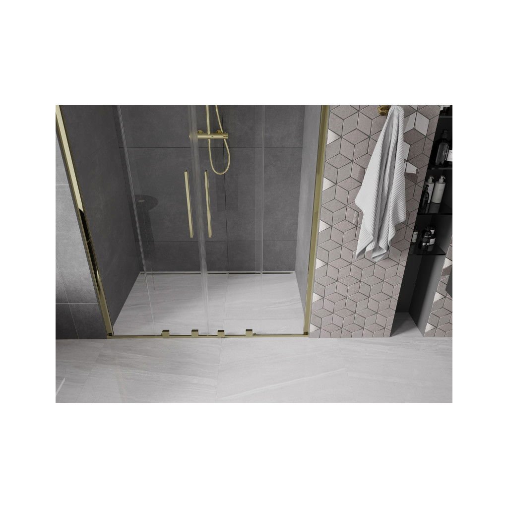 Mexen Velar Duo, posuvné dveře do otvoru 160x200 cm, 8mm čiré sklo, zlatá lesklá, 871-160-000-02-50