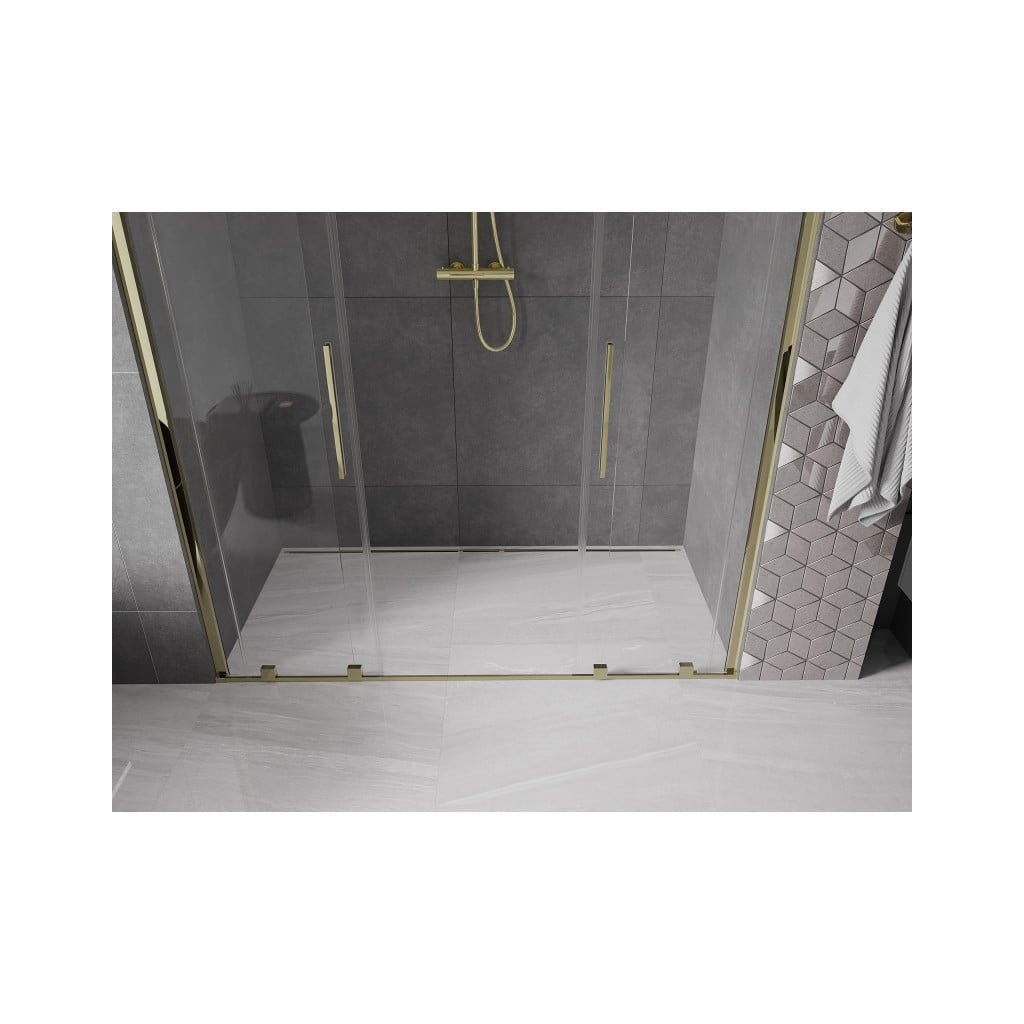 Mexen Velar Duo, posuvné dveře do otvoru 180x200 cm, 8mm čiré sklo, zlatá lesklá, 871-180-000-02-50