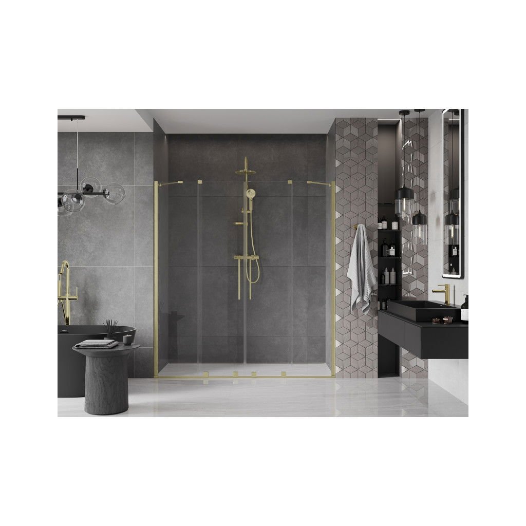 Mexen Velar Duo, posuvné dveře do otvoru 200x200 cm, 8mm čiré sklo, zlatá matná, 871-200-000-02-55