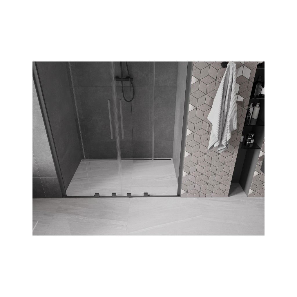 Mexen Velar Duo, posuvné sprchové dveře do otvoru 140 cm, 8mm čiré sklo, broušený grafit, 871-140-000-02-95
